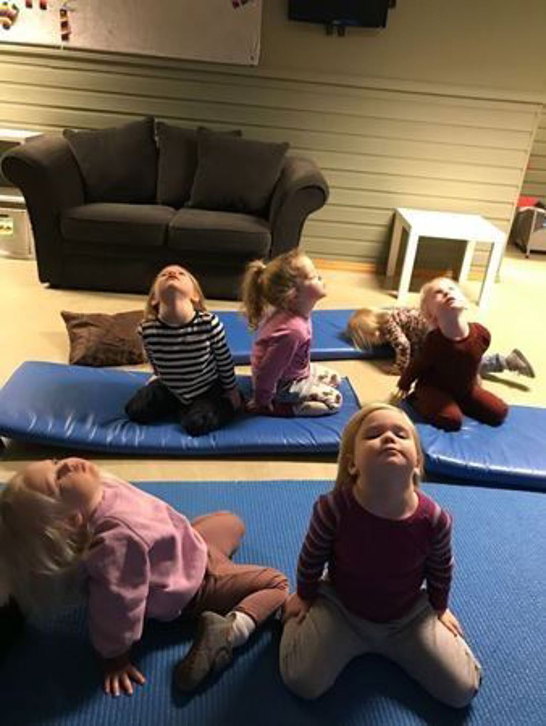 Vi opplever at de fleste gjerne deltar på Yogastunder. Det får barna til å slappa godt av og kan være med på å gi dem økt konsentrasjon. I en travel hverdag med stort tempo kan en rolig stund med yoga, bidra til at barna slapper av. Iflg yogaterapeut og forfatter Isabelle Schjelderup kan yoga bygge oppunder barnas mestringsfølelse. Barna oppfordres til prøve mer og mer med nyskjerrighet og lek samt til å utforske og hva som krever av balanse , styrke og smidighet.