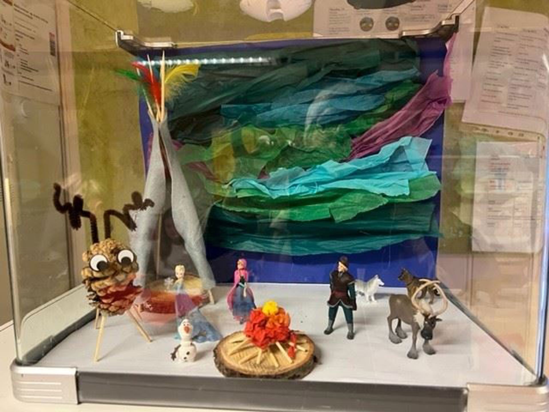 På avdelinga Solsikka blir barna engasjert når vi kobler sammen noe som for dem er god kjent, sammen med kulturarv og naturfenomen. Vi lager vårt eget fargerike nordlys, og trekker inn kjente figurer fra Frost sammen med bål, samiske farger og telt. Da møtes ny og gammel kultur.
